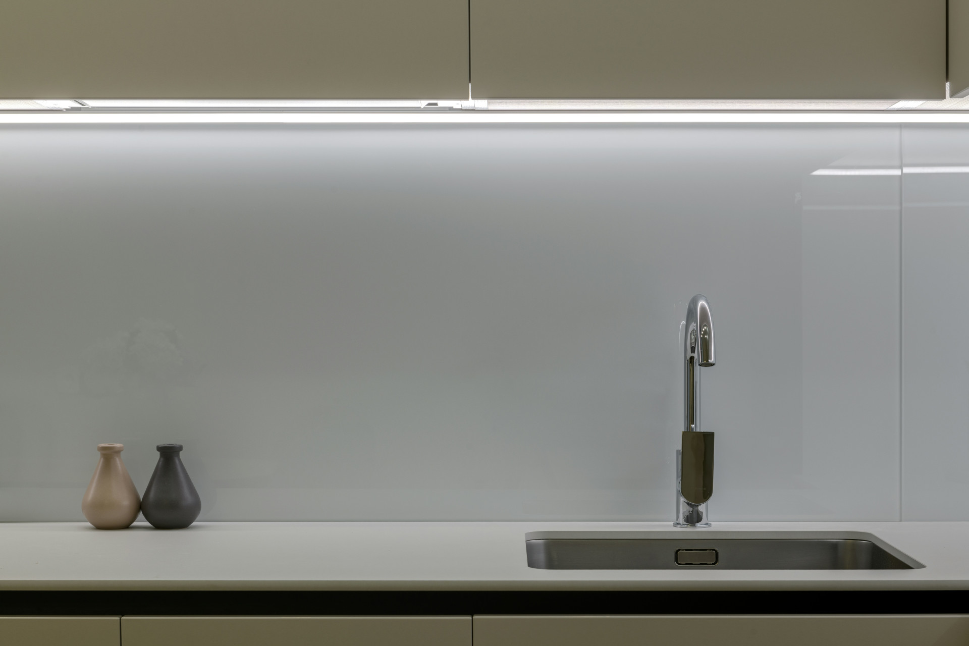 - LED-strips under overskabe: Giver et jævnt lys på væggen og bordpladen uden at blænde.